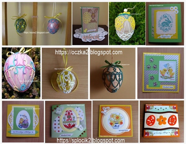 Nareszcie udało mi się usiąść do komputera i napisać kilka słów. Czuję nad sobą wzrok Kasi więc naprawdę się mobilizuję, ale nie jest to łatwe. Ciągle brakuje mi czasu i sił. Po pracy zwyczajnie ich już nie mam a jeszcze są inne obowiązki...ale do rzeczy. Zdaję sobie sprawę, że post wstawiam późno, ale mam nadzieję że to nie będzie nam przeszkadzało. Nie było by go tez gdyby nieoceniona pomoc Kasieńki (Xgalaktyki), która postarała się zrobić za mnie najcięższą pracę, czyli zestawienie i kolaż wszystkich Waszych prac wielkanocnych. Kasiu bardzo Ci za to jestem wdzięczna ale myślę że również docenią to dziewczyny, które przez okrągły rok brały udział w tej zabawie :)