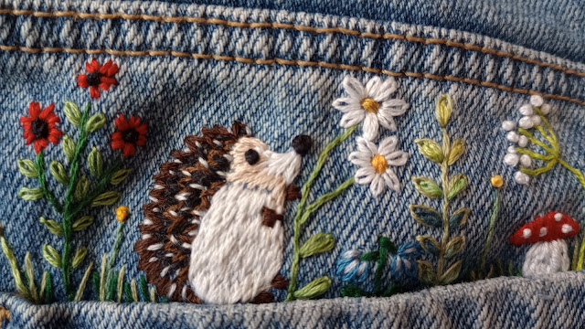 Piję kawkę i ciężko mi się obudzić po wczorajszym dyżurze, dzisiaj wieczorem idę znowu do pracy i jakoś jestem taka niewyraźna czyli zwyczajnie zmęczona i przemęczona 🤦 No ale kto z Was nie ma takich chwil. Kiedy wczoraj wieczorem wróciłam z pracy i oklapłam na fotelu mąż powiadomił mnie , że jedziemy na długi weekend na Mazury aby trochę odpocząć.. znalazł kilka kontaktów, podzwonił i za naprawdę niewielkie pieniądze mam nadzieję uda nam się wyrwać na 3 dni, mam taką przynajmniej nadzieję, że nic się nie wydarzy.. Wiem, że to niewiele ale dla mojego zdrowia psychicznego to ważne. Ale, ale wątek mi uciekł 🤣🤦wracam do tego, że piję 2 kawkę i staram się wrócić do równowagi przed wyzwaniami dzisiejszego dnia 😉. Mój wzrok ląduje na dżinsach które noszę okazjonalnie ponieważ ostatnio dużo schudłam i ściągam je bez odpinania ...szkoda mi je wyrzucić bo kupiłam w zeszłym roku, podobają mi się nie tylko ze względu na kolor..jest tylko mały problem ..na ciemnych tkaninach widać każdą plamkę. Nawet nie wiem skąd pochodzi i kiedy się to stało. W każdym razie zmobilizowało mnie to by zrobić sobie wreszcie mały? haft na tej plamie. Kurcze przecież ja też chcę mieć haftowane spodnie! I tym sposobem siedząc przy kawie zrobiłam przed południem haft..